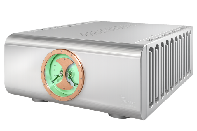 Reference Stereo Power Amplifier – 350W/700W/1,400W into 8/4/2Ω, fully balanced, complementary, discrete circuitry, high efficiency heatsinks, mineral glass meter face, custom made binding posts