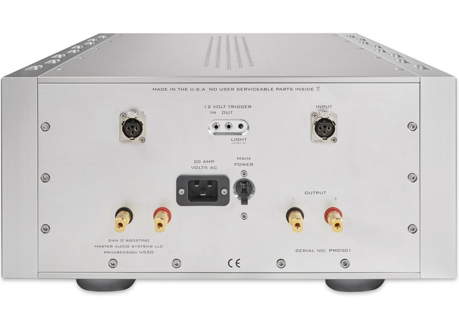 Abundant power is required for realistic sound quality and is a cornerstone of Dan D’Agostino Master Audio Systems’ amplifier design. The Progression Stereo continues this practice. A graceful anodized Aluminum chassis houses a 2,000 VA power supply transformer coupled to nearly 100,000 microfarads of power supply storage capacitance. Paired to this foundation is a fully complementary driver stage, and output circuitry outfitted with 48 power transistors - 24 each for the left and right channels generating an imposing output. Initially used in the Relentless Mono, the output power device provides the foundation for an upgraded output stage. This transistor extends high frequency response, increases power handling 50%, and features tighter tolerance gain matching between complementary NPN/PNP pairs. A wider safe operating area and superior gain linearity provides greater thermal stability throughout the amplifiers’ power delivery. Coupling the new output device to the high efficiency heat sink design affords an increase in operating bias. Higher operating bias lowers crossover distortion improving instrument timbre and tonal reproduction. The Progression Stereo delivers 350 Watts into 8 Ohms and delivers 700 Watts into 4 Ohms, and properly doubles its output again into 2 Ohms, with a 1,400 Watt power output. The essence of live music, dynamic contrasts, are faithfully reproduced with leading edge transients spectacularly depicted.
