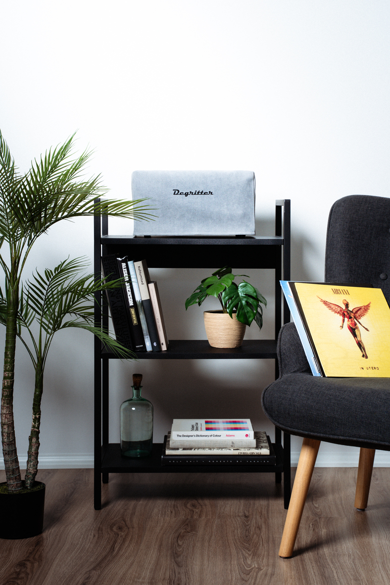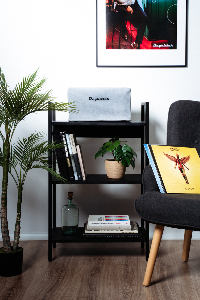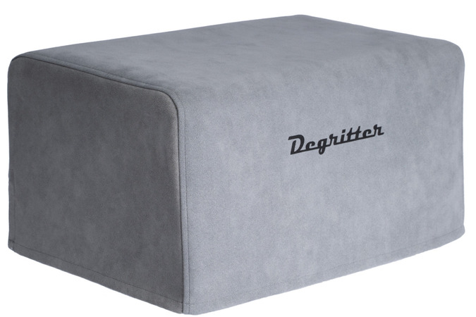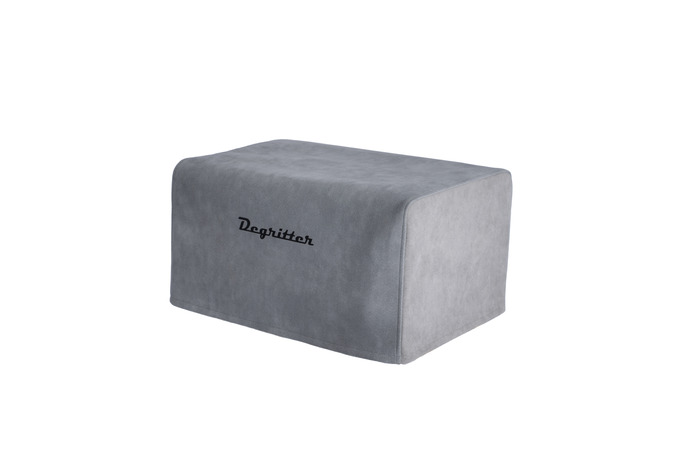 The Degritter Mark II dust cover is like a tailored suit for your machine. It’s made from Italian Alcantara fabric – a velvety, suede-like synthetic material used in luxury car seats. It’s washable, durable and fits nicely.